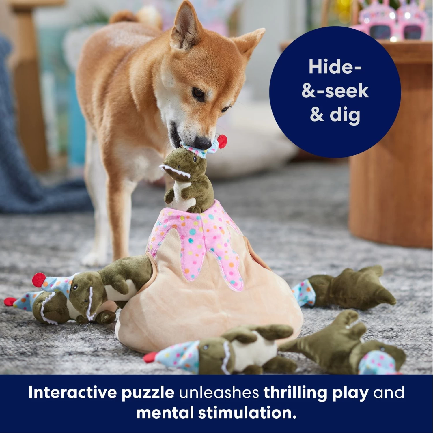 Frisco Birthday Volcano & Dinosaurs Hide & Seek Puzzle Plush Squeaky Dog Toy