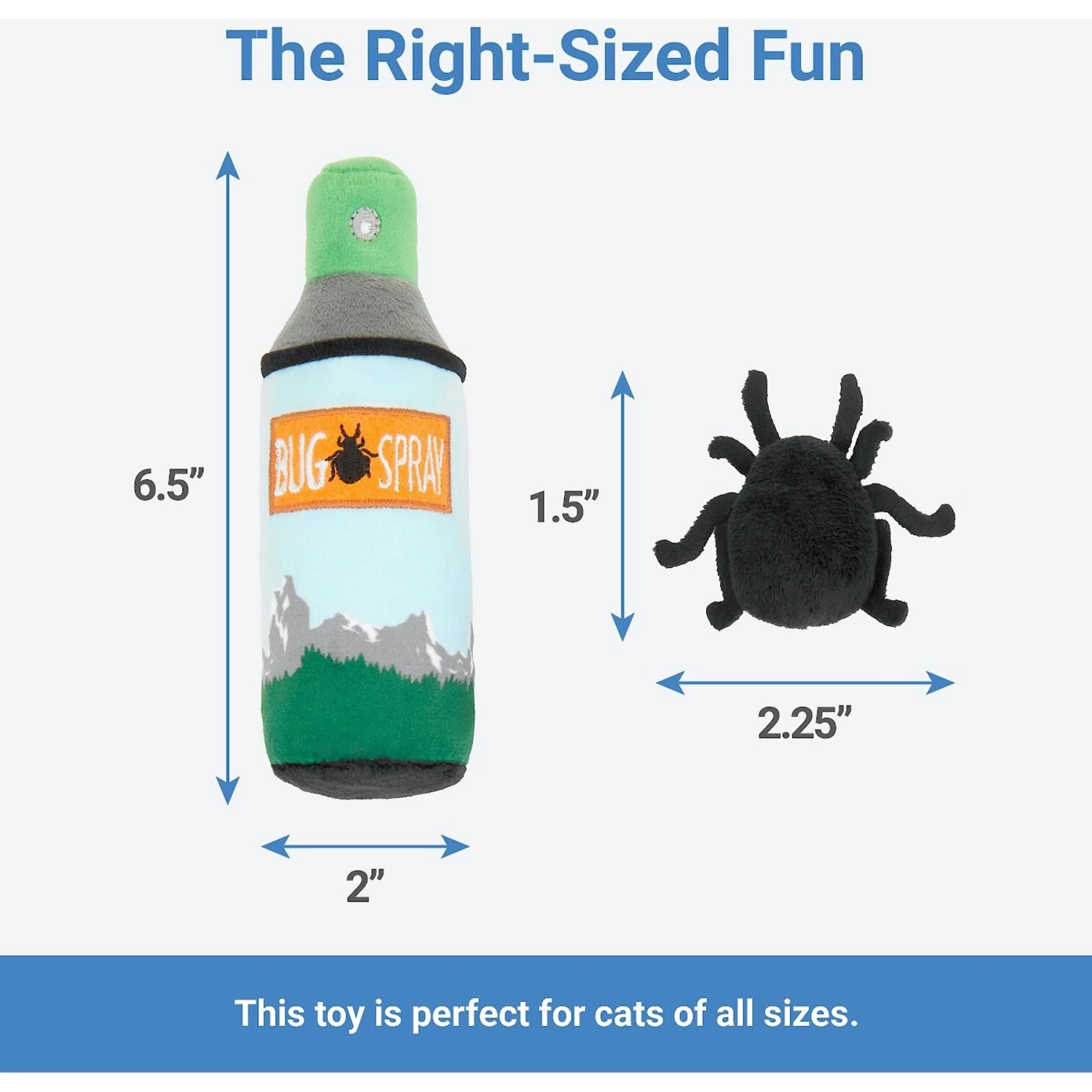 - Comes with three toys—bug spray and two bugs.