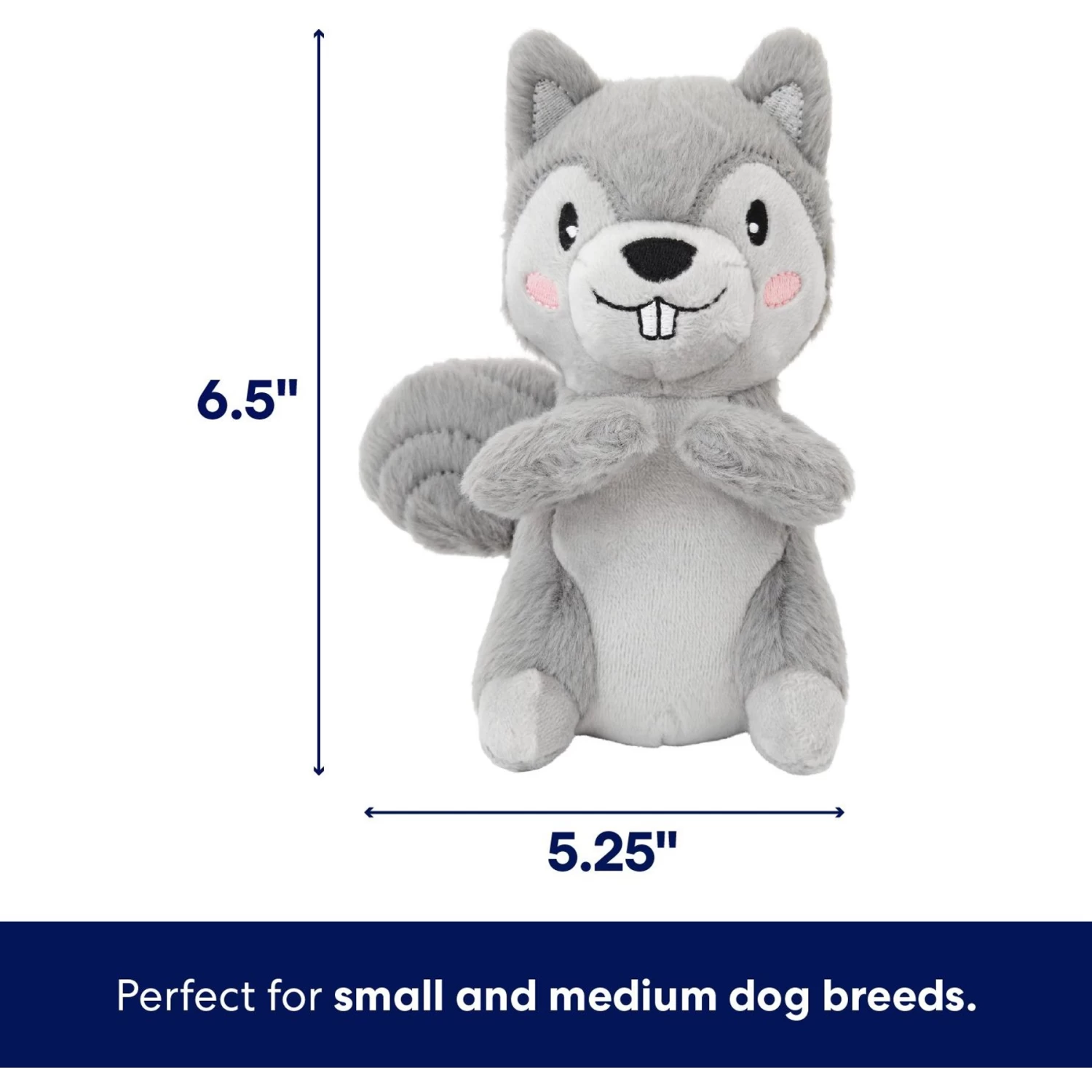 - This squirrel plush toy with two squeakers and crinkle paper is ready to bring on the fun.