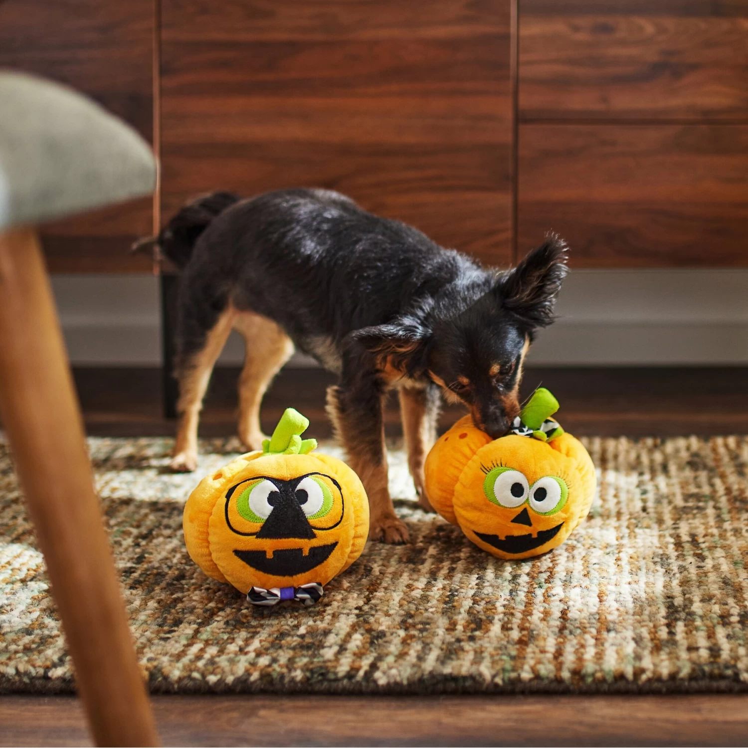 - Each nerdy jack-o-lantern has a squeaker inside to get your pup’s attention.