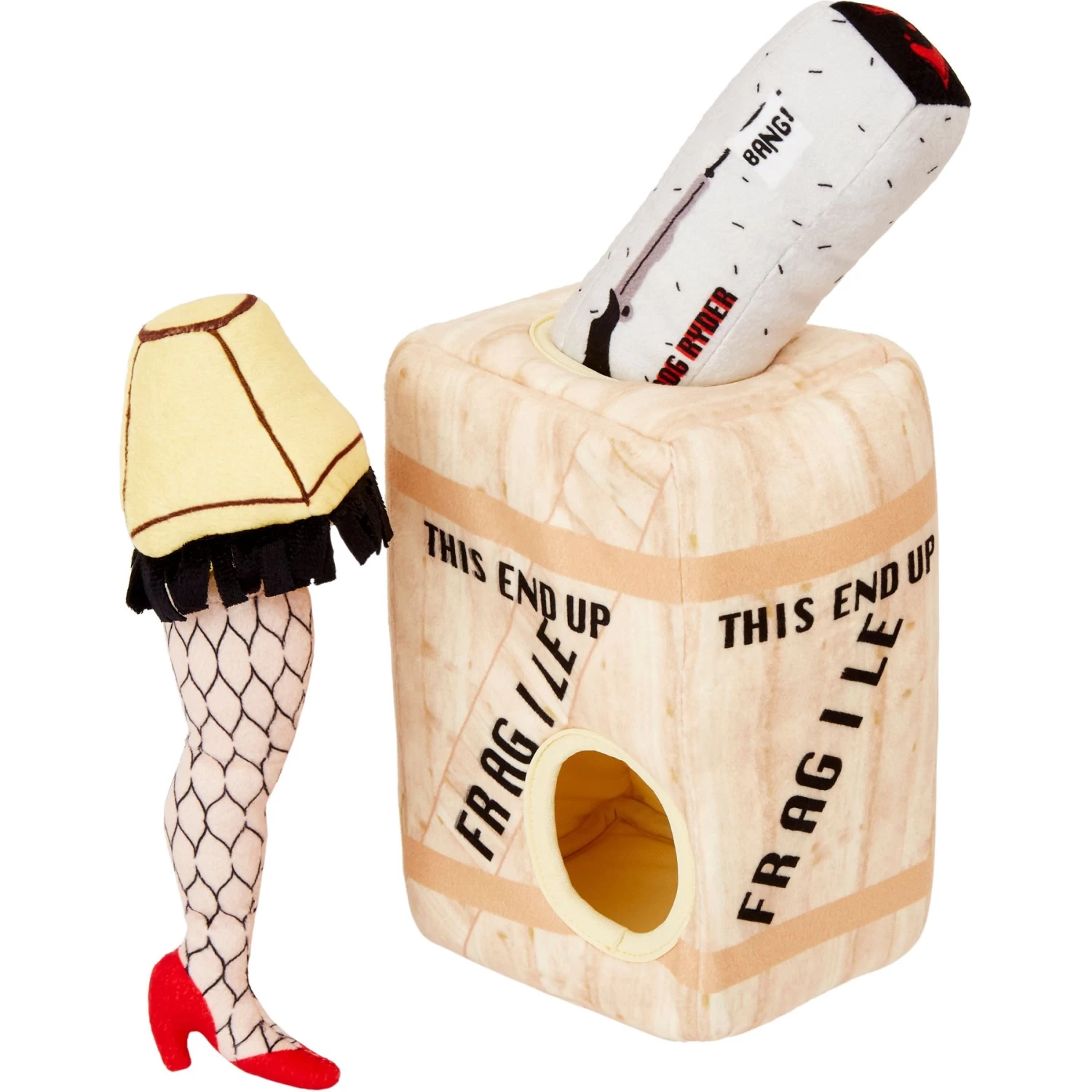 - Holiday-themed fragile box hide-and-seek toy comes with a crate base along with three themed toys to hide inside. Makes a great gift to show your furry friend how thankful you are to have them with you during the holidays.