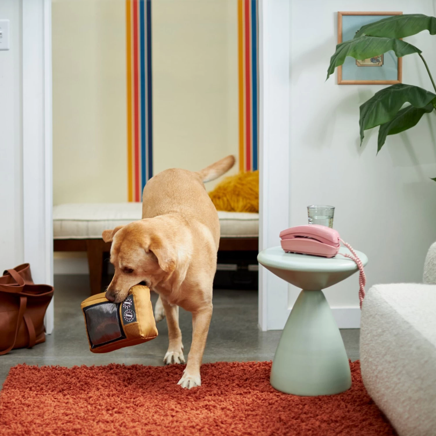 - Retro wood-paneled TV dog toy adds some nostalgic cuteness to your dog’s toy collection.
