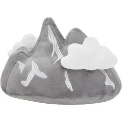 - Plush mountain features two removable clouds attached with hook and loop fasteners.
