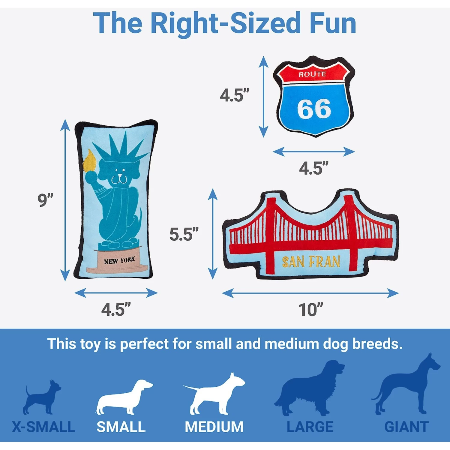 Frisco Road Trip Sightseeing Plush Squeaky Dog Toy, 3 Count