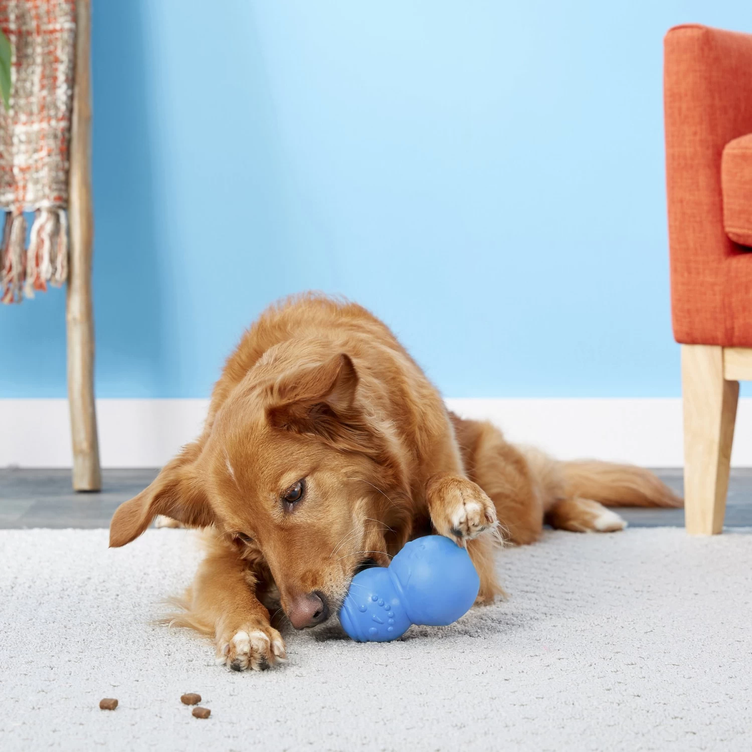 - Made of natural rubber and is safe and durable for most moderate chewers. It’s also naturally bouncy, so you can toss it for even more playtime fun.